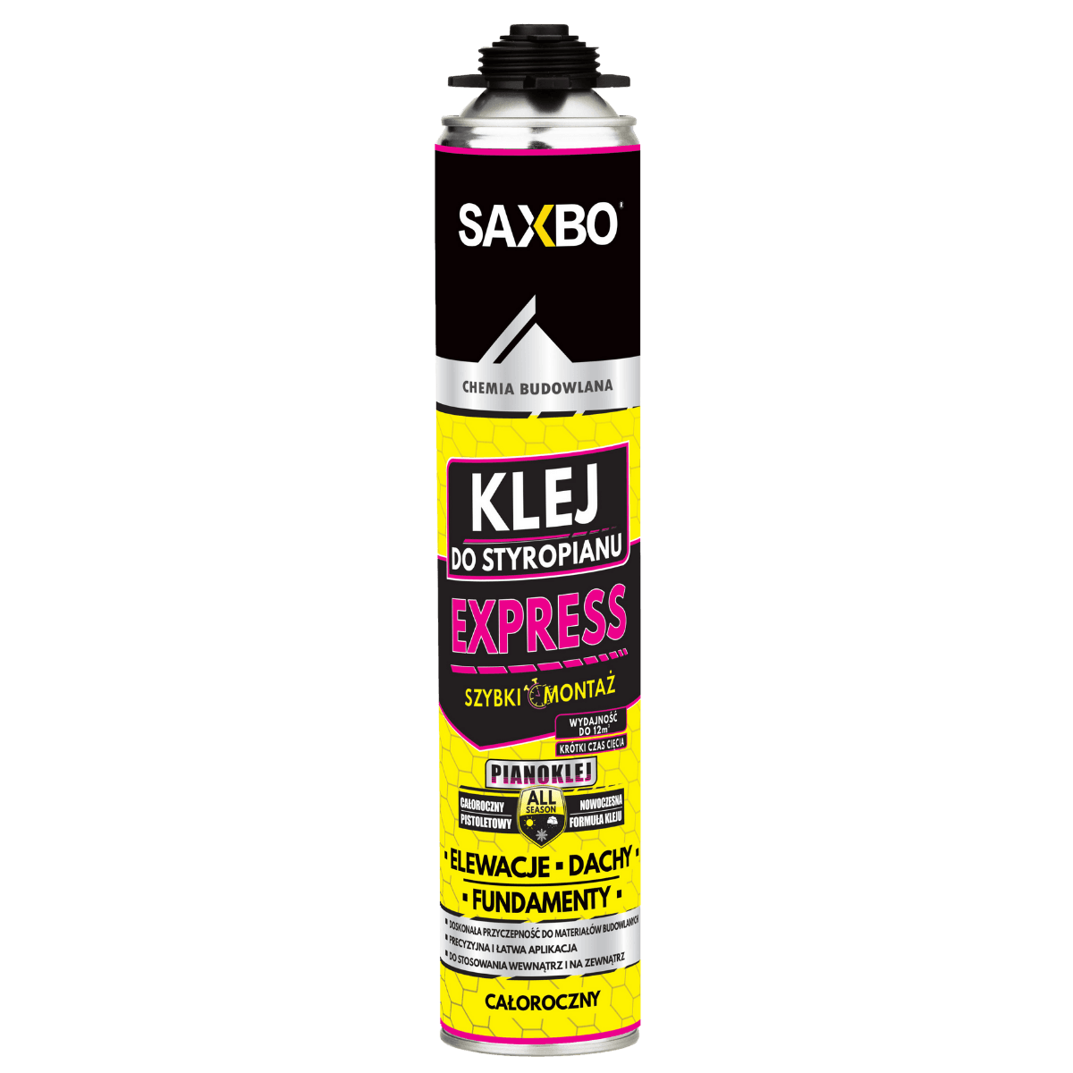 Professional foam glue for fixing insulation boards on facades, foundations and roofs. It is characterized by very good adhesion to building materials such as EPS, XPS polystyrene, polyurethane boards (PUR, PIR), concrete, metal, plasterboard, wood, ceramics and bituminous surfaces. The applied modern formula ensures excellent insulating properties (λ0.034W / m²K) and high initial clamping force in a wide temperature range (from -5 ° C to 30 ° C). The product has been proven by professionals on various mineral substrates. Gluing without dust, without the need for water and electricity, no lifting. HIGH EFFICIENCY - one package provides fixing up to 12m².