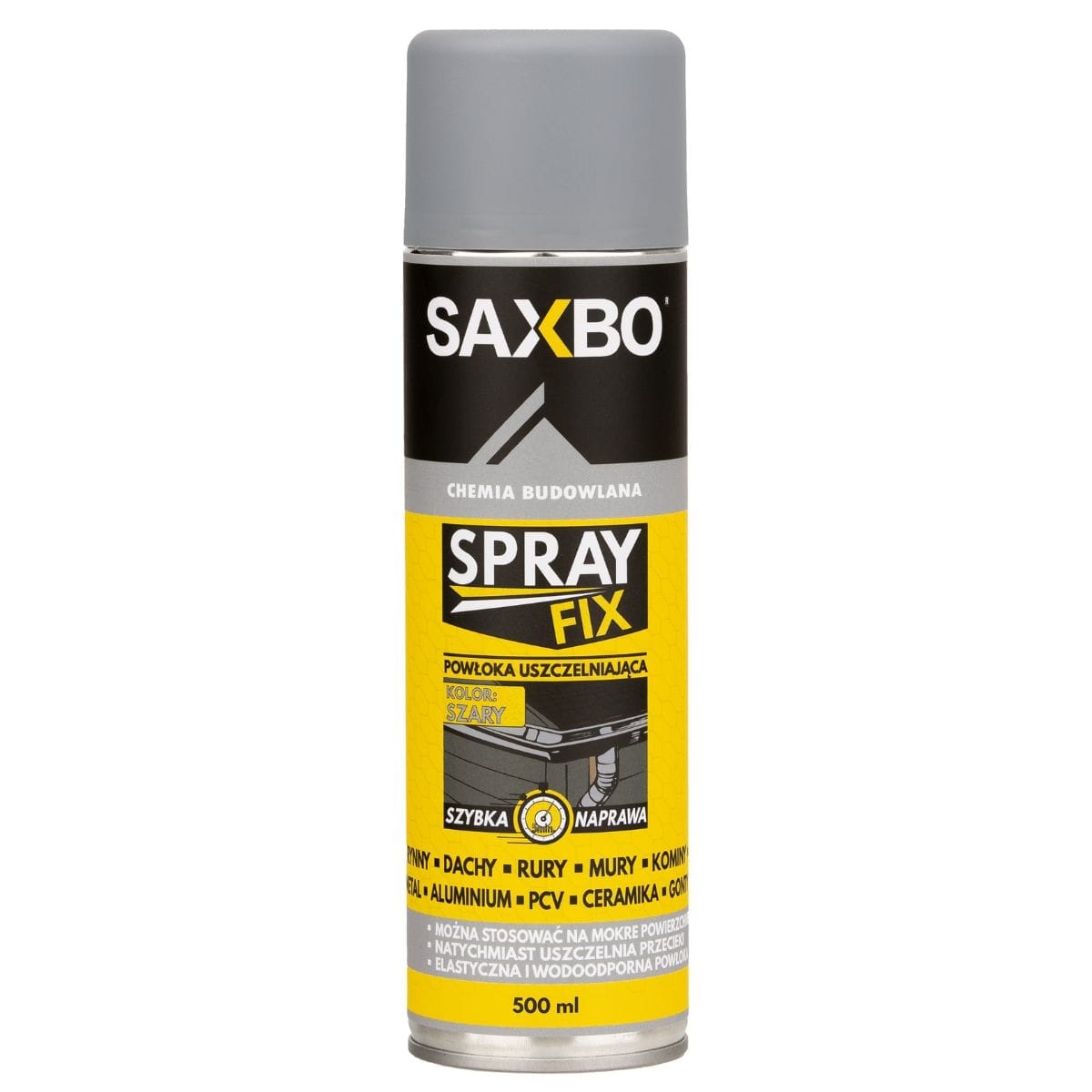 Thoroughly clean the repaired surface from dust, grease and loose waste. Before use, shake the can vigorously for about 30 seconds. Apply the product from a distance of approx. 15-20 cm. Wait after applying the first coat 5 minutes before applying the next one. Check that all joints are covered with SPRAY FIX. If necessary, apply another layer. Do not apply more than 4 layers. Immediately after the end of the application, invert the can and spray for 2-3 seconds until only the gas comes out - this will ensure multiple use of the product. Remove the dirt with the SAXBO liquid cleaner. The hardened coating can be removed mechanically. Store in a dry place